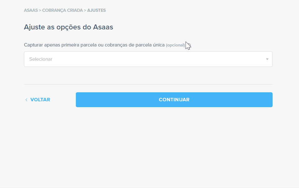 Na etapa seguinte, você vai definir quais dados quer enviar para o Asaas.