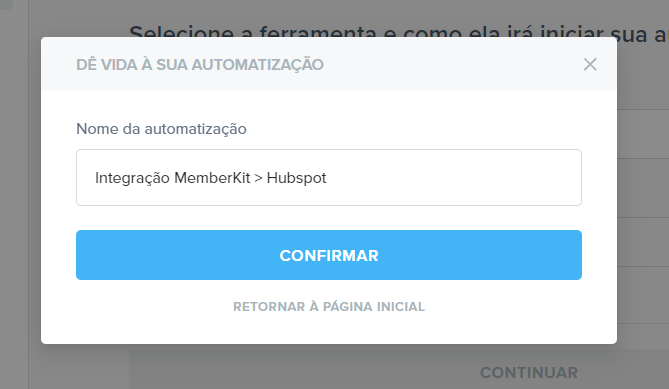 Selecione a MemberKit como ferramenta de origem, o gatilho desejado e clique em “Continuar”.